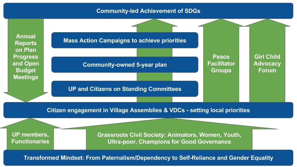 The Hunger Project (THP) has developed a comprehensive and systematic methodology for supporting rural communities to achieve the 2030 Sustainable Development Goals adopted by all nations including Bangladesh in September 2015. It has pioneered this approach in 185 unions across 52 upazilas and 28 of Bangladesh’s 64 districts. The strategy is an example of the …