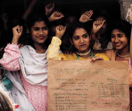 Women as change agents. As Bangladeshi women gain this new awareness, they take action. When women gain voice, they decide to space their children, and have fewer children. As they gain information on nutrition, they improve the health of their families. As they earn income themselves, they see the value of education for their daughters, and use their income to keep their daughters in school. As they form self-help groups with other women, they are able to reach out to more and more women. Millions of these actions, taken every day, add up to a new future for Bangladesh.